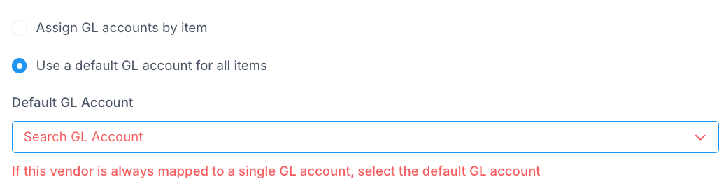 Export Workflow: If coded to a single GL, this can be set as default. If it's split between multiple accounts, the vendor would need to be set up to assign GLs by items.